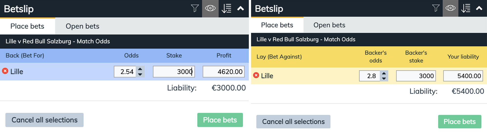 Tout comme pour Pinnacle, vous pouvez également basculer sur la plateforme de Betting Exchange de Betfair pour pratiquer le trading sportif comme si vous étiez sur Betfair. Vous êtes d’ailleurs sur le même marché que OrbitX vous avez donc les mêmes liquidités. Vous retrouvez les possibilités classiques de trading football c’est à dire le Back and Lay ainsi que le cash out avec de bonnes liquidités.