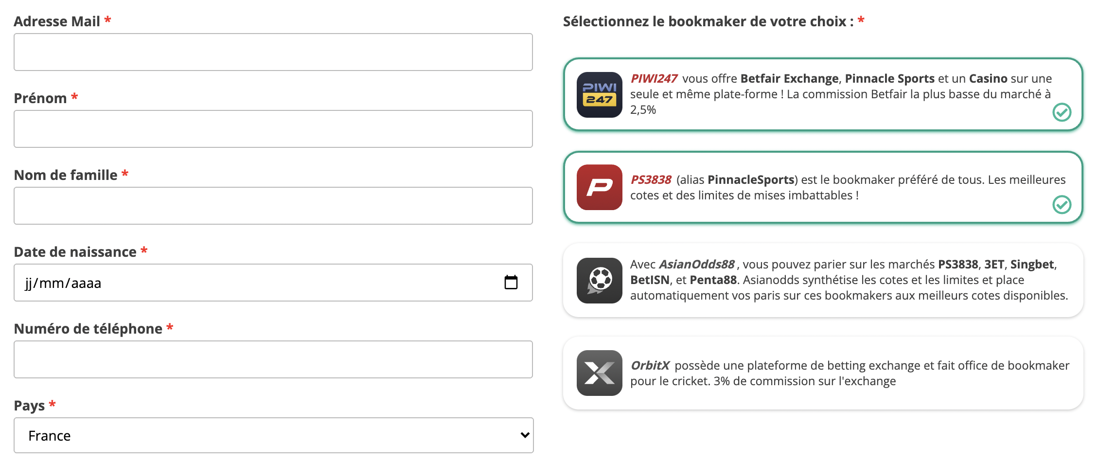 Pour parier sur PIWI247 vous devez ouvrir un compte chez Asianconnect et choisir PIWI247 dans les bookmakers proposés.