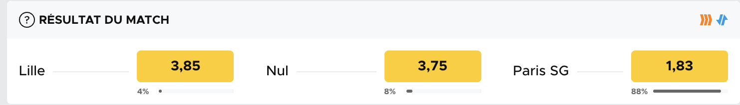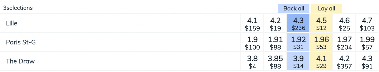Dans l’exemple ci-dessous, les liquidités concernant la victoire de Lille @4,3 sont de 236$.